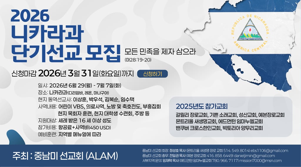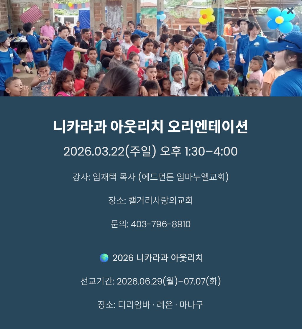 지난 3월 22일 주일 오후, 우리 캘거리 사랑의 교회에서는 2026 니카라과 단기선교를 위한 오리엔테이션이 열렸습니다.